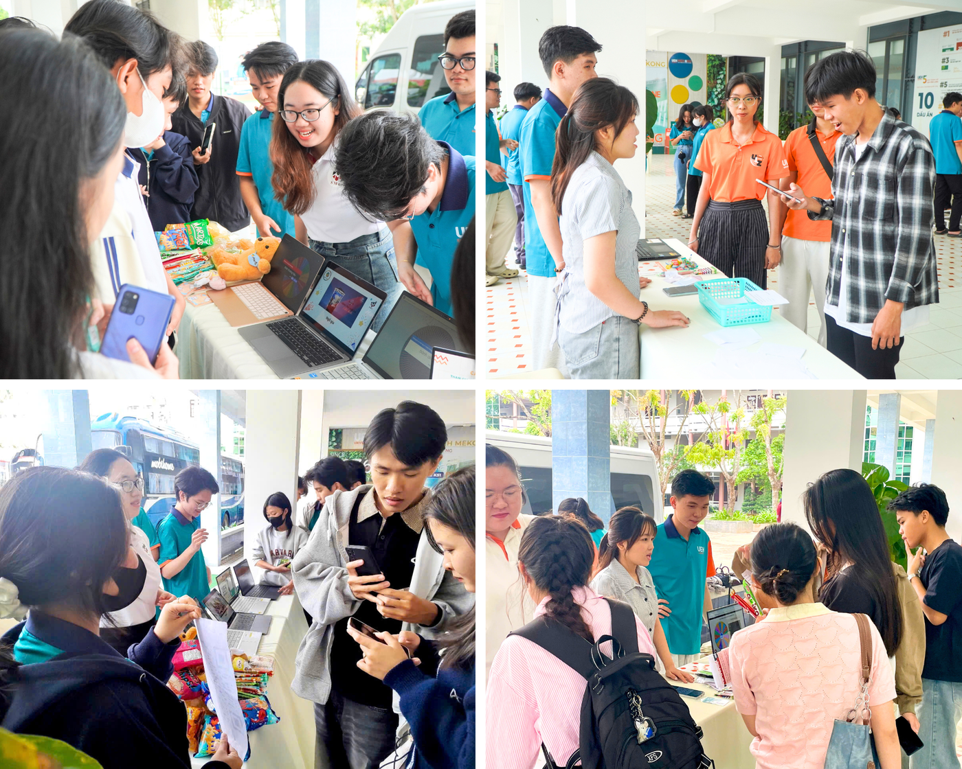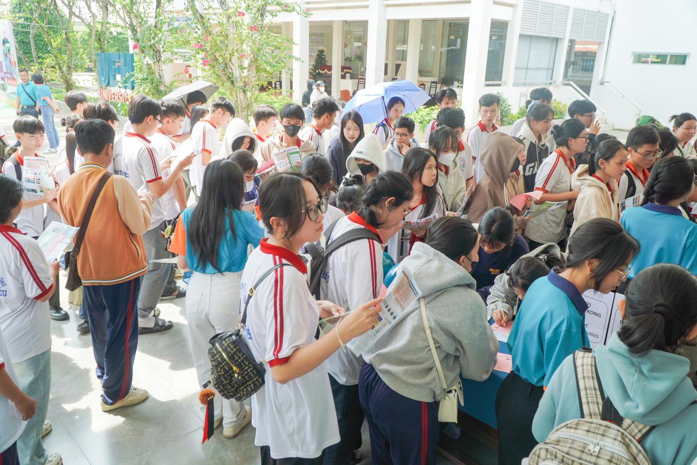 Ngoài ra, chương trình còn mang đến nhiều hoạt động trải nghiệm thú vị như: Thi đấu robot và tiếp cận sản phẩm công nghệ do sinh viên ngành Robot và Trí tuệ nhân tạo nghiên cứu, chế tạo; Tìm hiểu mô hình Đại học xanh UEH thông qua UEH Green Campus Game và công cụ AI thực hành phân loại rác, cùng các gian hàng trò chơi và hoạt động tương tác thú vị từ các Câu lạc bộ sinh viên UEH Mekong. Những trải nghiệm này giúp học sinh hình dung rõ hơn về môi trường đại học, khơi gợi đam mê và từng bước nhận diện tiềm năng bản thân, làm nền tảng cho việc lựa chọn ngành học trong tương lai.