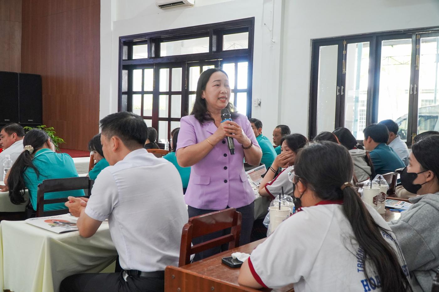 TS. Nguyễn Thị Thý Liễu giải đáp thắc mắc cho các em học sinh về chương trình đào tạo bằng Tiếng Anh bán phần, môi trường học tập, các kỹ năng hội nhập quốc tế,…