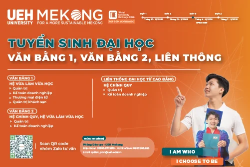 Đại học Kinh tế Thành phố Hồ Chí Minh (UEH) thông báo tuyển sinh trình độ đại học các hình đào tạo đợt 02 năm 2026, học tại Vĩnh Long…